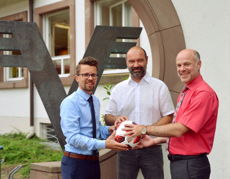 Ein nettes und schönes Ritual fand wieder vor dem Fußballwochenende statt: Die Volksbank Lahr und für sie Mathias Hug und Matthias Bruder überreichten an die Veranstalter der Fußball-Dorfmeisterschaft einen neuen Spielball. Das Leder, das derzeit auch in Russland über die Rasen rollt, soll allen Glück bringen – Veranstaltern, Zuschauern und Teams.