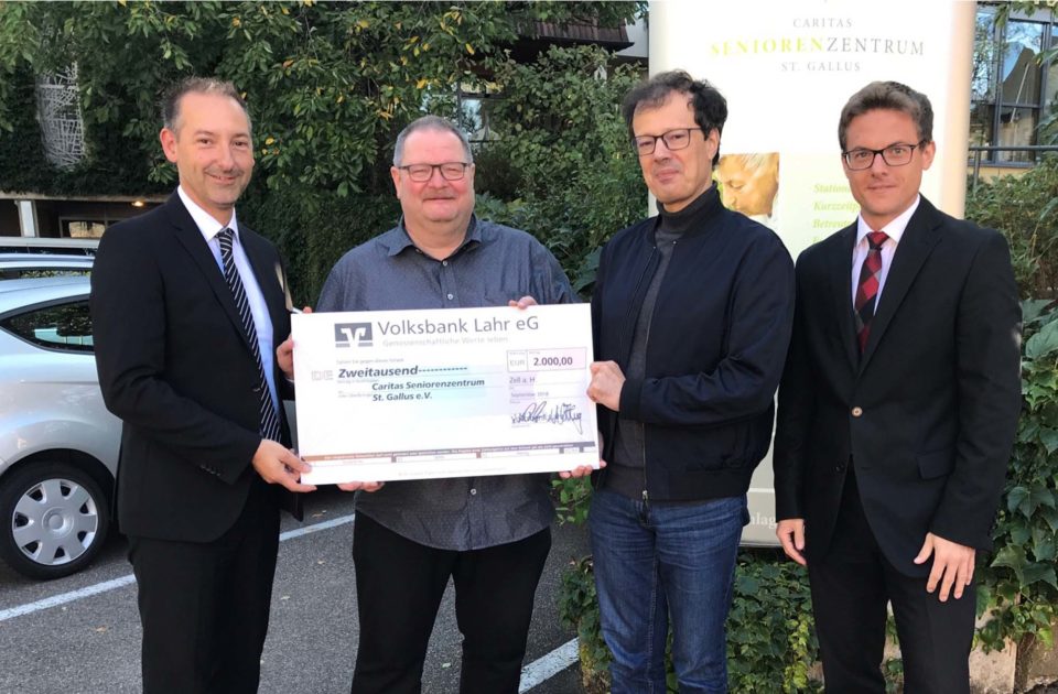 Anlässlich des 50-jährigen Jubiläums des Caritas Seniorenzentrum St. Gallus e. V. übergab die Volksbank Lahr eine Spende über 2.000 Euro. »Den Geldbetrag werden wir als Grundstock für ein behindertengerechtes Fahrzeug mit Heckumbau einsetzen«, freute sich Verwaltungsleiter Thomas Dreher. Bewohner, die auf einen Rollstuhl angewiesen sind, werden mit diesem Fahrzeug zum Beispiel zu Facharztterminen gebracht oder […]