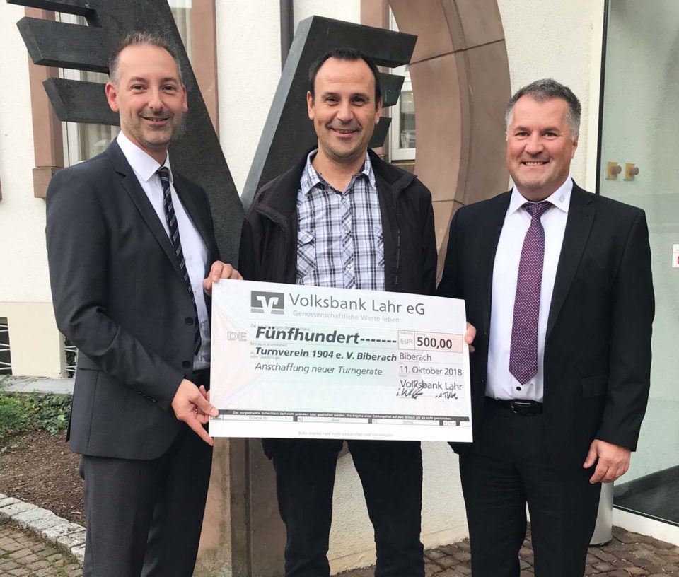 Für die Vereins- und Jugendarbeit konnte der TV Biberach vor einigen Tagen eine Spende der Volksbank Lahr über 500 Euro aus den Mitteln des Gewinnsparvereins entgegennehmen.