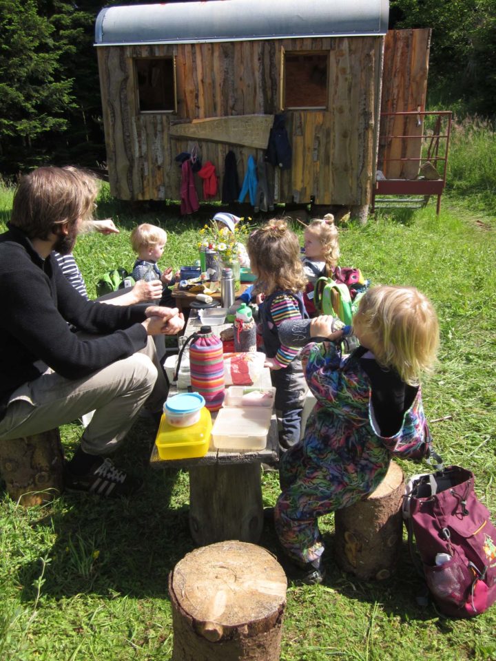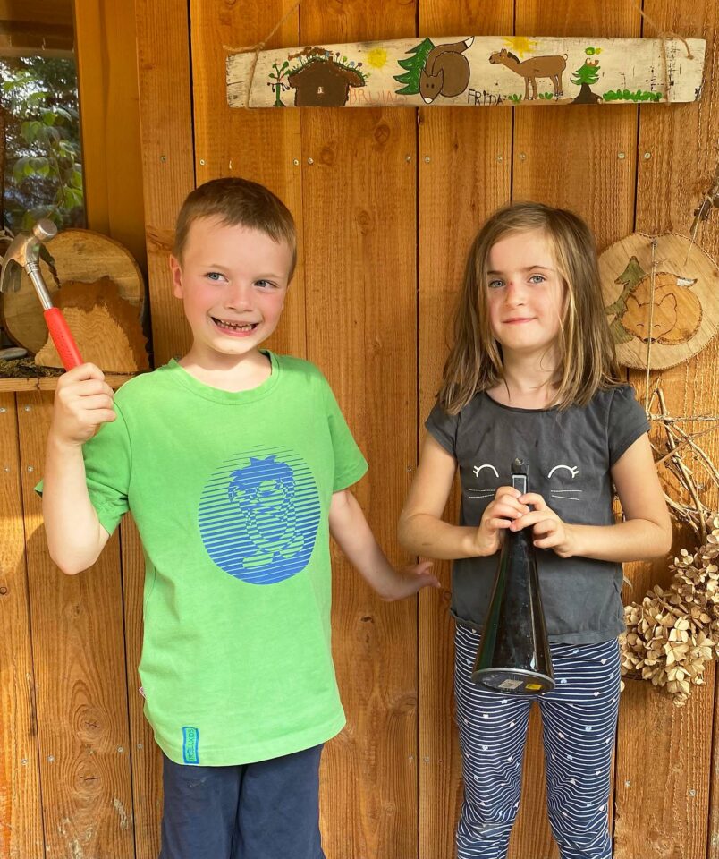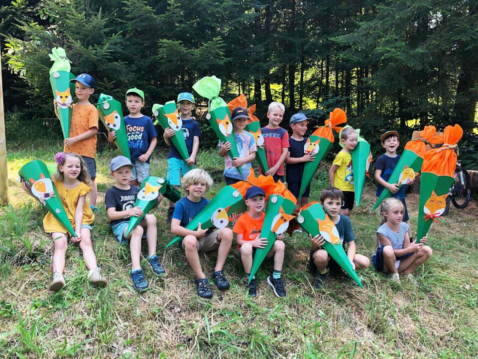 Vergangenen Donnerstag war es soweit: Man traf sich zur Verabschiedung der beiden Schulanfänger Frida und Bruno in kleiner Runde an der Hütte im Wald, oben beim Wasserreservoir.