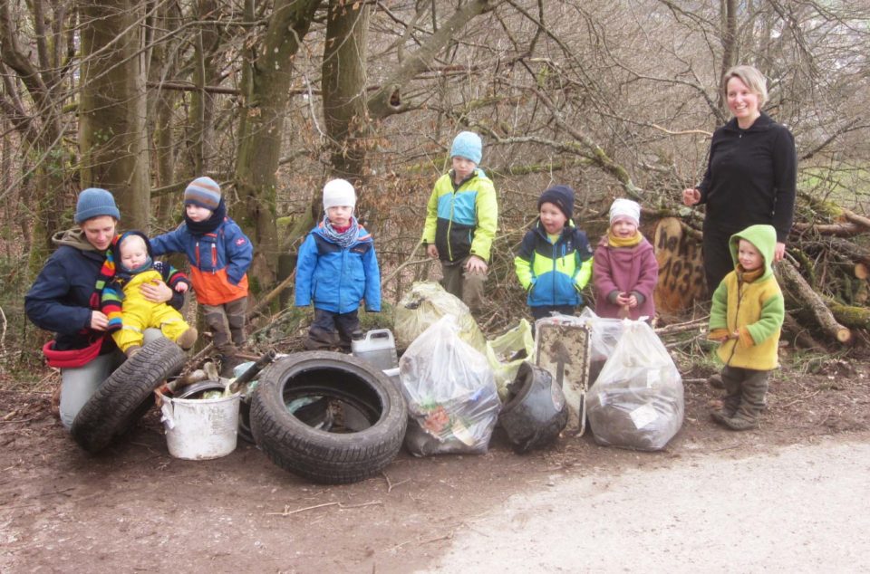 Die Kinder der Waldspielgruppe sehen ungläubig auf den Berg an Müll, den sie an nur einem Vormittag am Eckwald-Parkplatz zusammengesammelt haben. Die Stelle ist ein Stück weit ihr »Wohnzimmer«. Von hier aus starten die Waldkinder ihren Tag. Sie fragen sich: Wer wirft nur die ganzen alten Sachen ins Gebüsch?