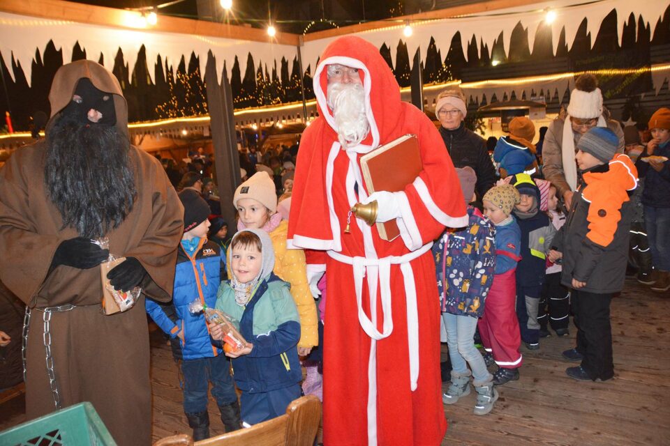 Vorweihnachtliche Atmosphäre auf dem Biberacher Weihnachtsmarkt. Der Nikolaus und sein Knecht Ruprecht verteilten eifrig Geschenke.