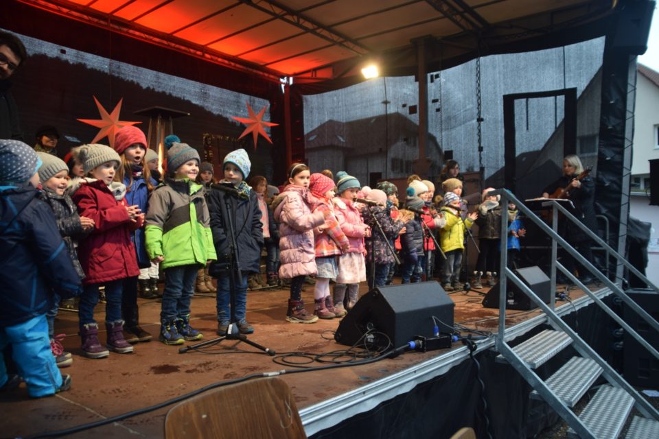 Ein Höhepunkt des Nordracher Weihnachtsmarktes war die Aufführung des Weihnachtsmusicals im voll besetzten Bürgerhaus. Lehrer Yannick Lupfer hatte das Stück mit den Schülern der dritten und vierten Grundschulklasse einstudiert. Zunächst sangen die Kinder zwei Weihnachtslieder in englischer und spanischer Sprache: „We wish you a merry Christmas“ und „Feliz Navidad“.