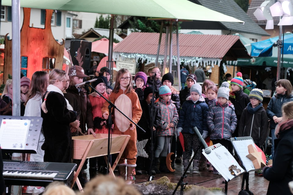 Der »Weihnachtszauber im Obertal« am Samstag war in diesem Jahr nicht gerade vom Wetter verwöhnt worden. Doch der Regen, vermischt mit ein paar Schneeflocken, tat der Stimmung im kleinen Weihnachtsdorf rund um den großen Christbaum keinen Abbruch.
