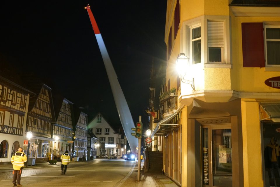 Sie rollen in der Nacht, die Schwertransporte, die die Windflügel zum Hohenlochen bringen.