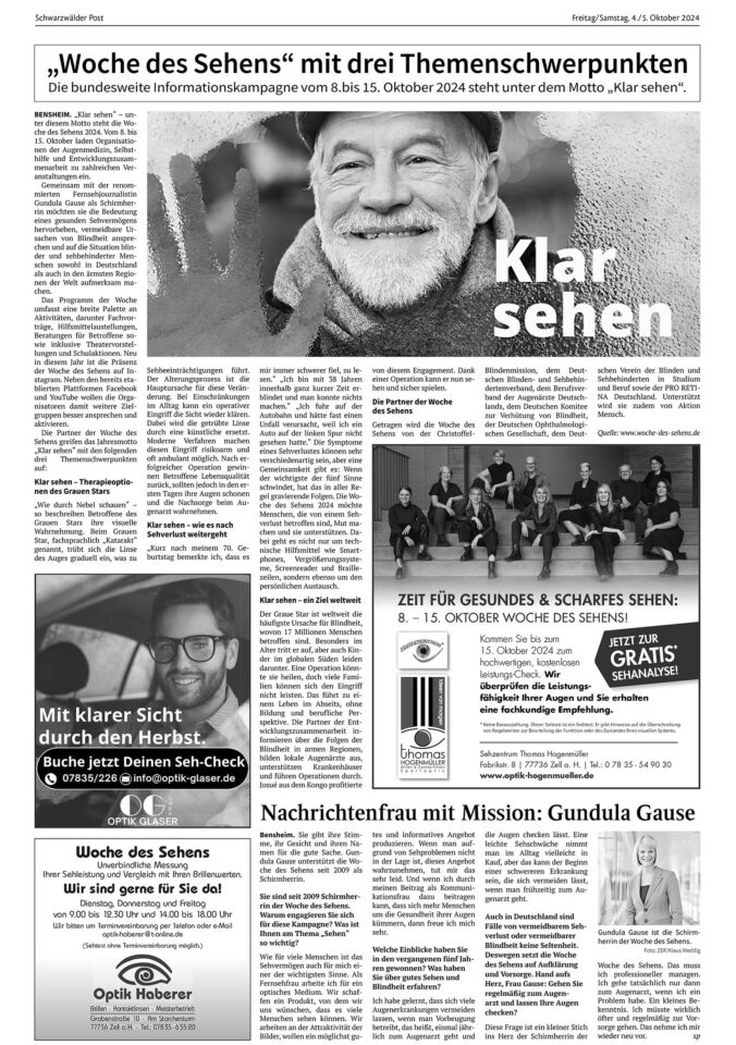 Die bundesweite Informationskampagne vom 8.bis 15. Oktober 2024 steht unter dem Motto „Klar sehen“.