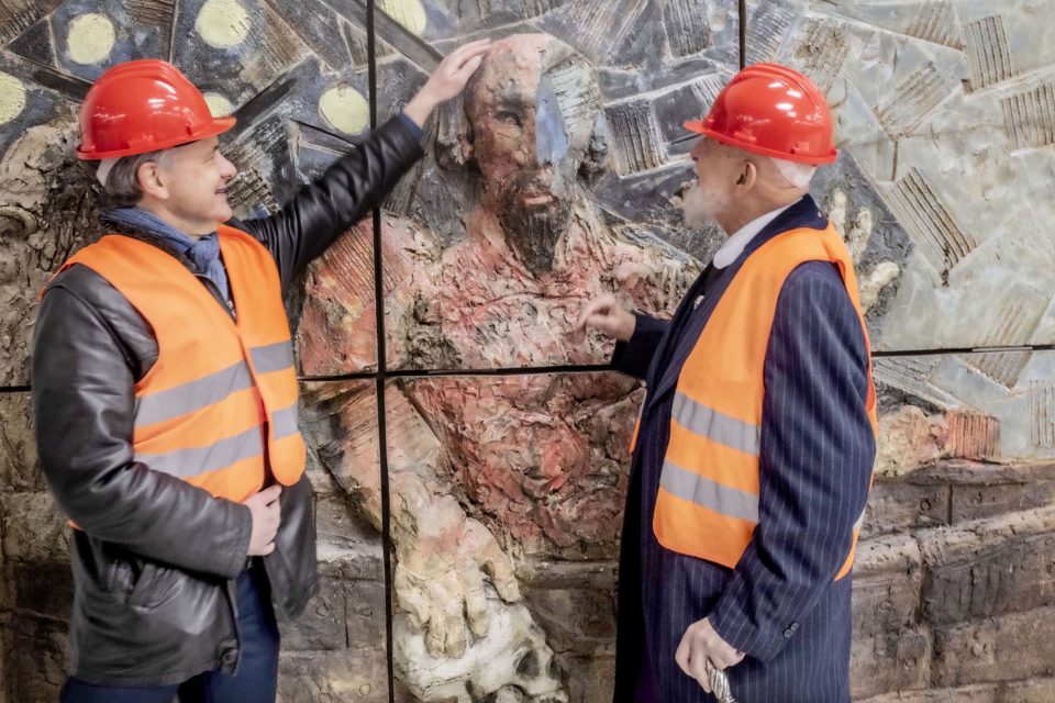 Der Künstler Markus Lüpertz wollte dem wiedergewählten Oberbürgermeister von Karlsruhe, Dr. Frank Mentrup, eine Weihnachtsüberraschung bieten. Spontan lud er ihn ein zur Besichtigung seines ersten fertiggestellten und installierten Kunstwerkes in der Haltestelle »Kronenplatz« der künftigen Karlsruher U-Bahn.