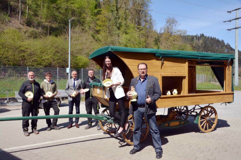 Es ist fast wie früher: Der Geschirr-Wagen des Biberacher Händlers Josef Schuh ist in der Zeller Keramik angekommen. Dort wird er nun in den kommenden Wochen voll beladen, damit er rechzeitig am 14. Mai 2022 zur Eröffnung des Rundofens mit viel Tam-Tam ins Zeller Städtle rollen kann.
