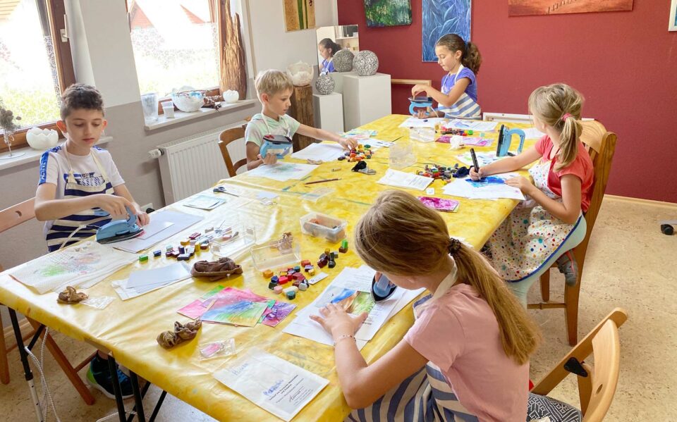 Im Rahmen des diesjährigen Zeller Ferienprogramms »Zelli« haben insgesamt zwölf Kinder an drei Terminen am Encaustic malen teilgenommen. Gemalt wurde mit heißem Wachs. Dabei entstanden wunderschöne Karten und Schlüsselanhänger.