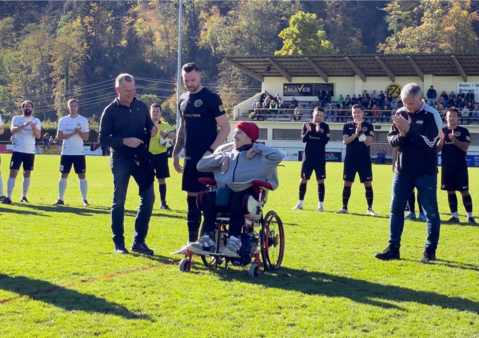 Vor dem Derby gegen den SV Oberharmersbach gab es eine Überraschung für Luca Stiewe, der mit seinem Vater Rolf schon jahrelang Spiele in der Region als Zuschauer verfolgt.
