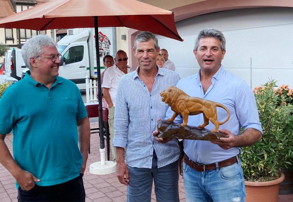 Anlässlich seiner Geburtstagsfeier im August überreichte »Bacardi-Club-Mitglied« Matthias Damm den beiden ZFV-Vorständen Christian Pristl und Bernd Herrmann einen symbolischen »Zeller Holzlöwen« fürs ZFV-Clubheim, mit der Hoffnung, dass dort ein geeigneter Standplatz gefunden wird.